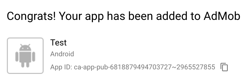 The first identifier is the app id. The second is the ad unit identifier. You need to know these identifiers to insert them in the game properties and actions parameters to display the ads. Copy them or leave the screen open.