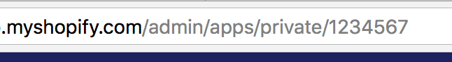 In Shopify, open your shop administration dashboard. Add an app and note the app identifier (a large number):