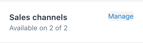 - Verify that your previously created private app is listed in the sales channels (click on manage if that's not the case):