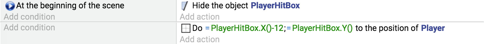 . This variable represents the scene being played. Below is an example of a standard GDevelop event, and an equivalent event that uses a JavaScript: