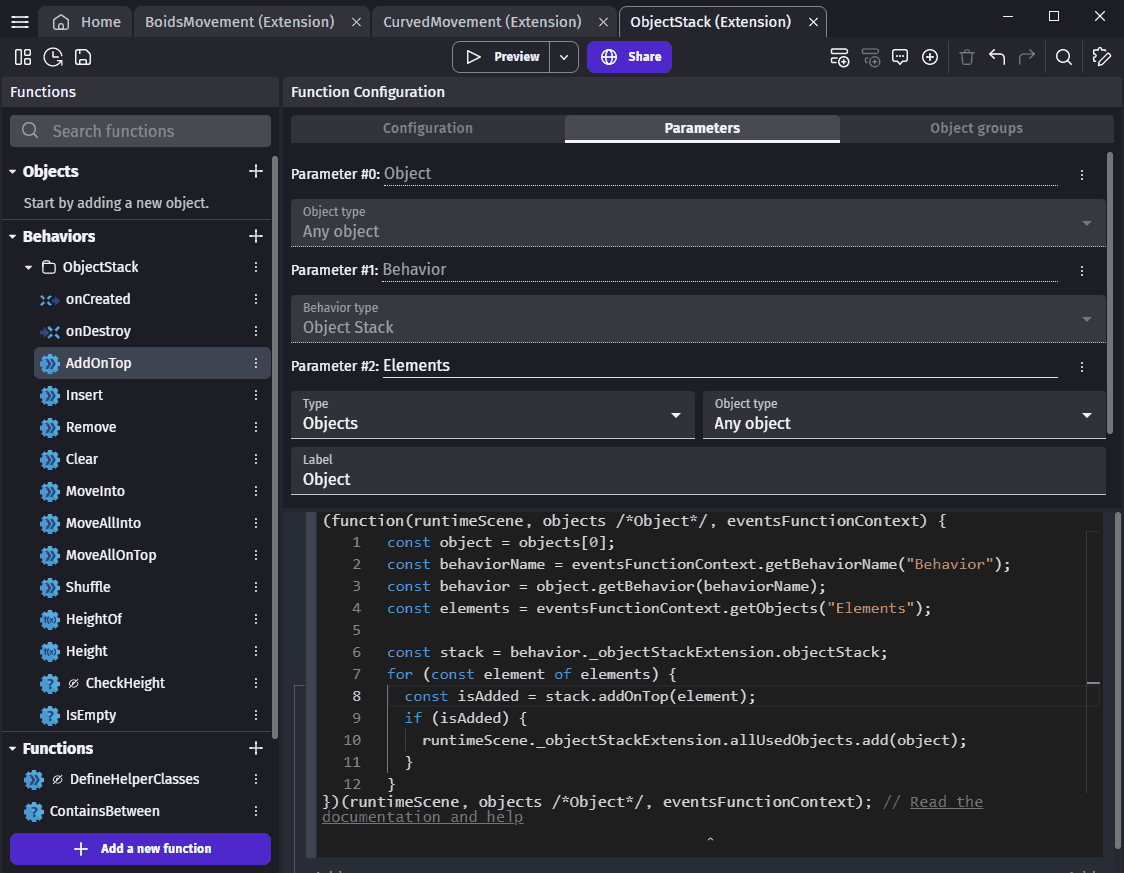 - The Curved movement extension evaluates Bézier curves using JavaScript and handles movement logics with events.