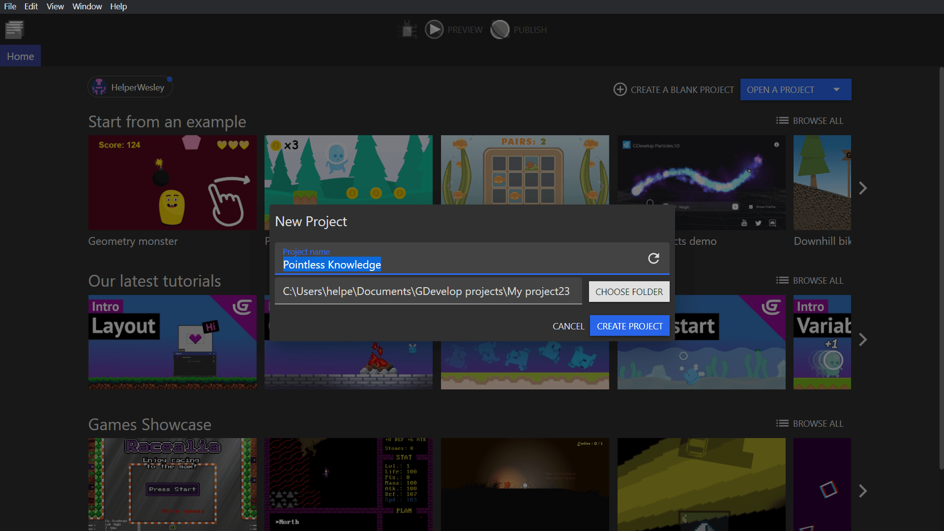 Open a blank game project in GDevelop