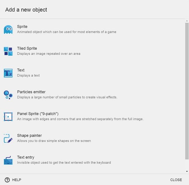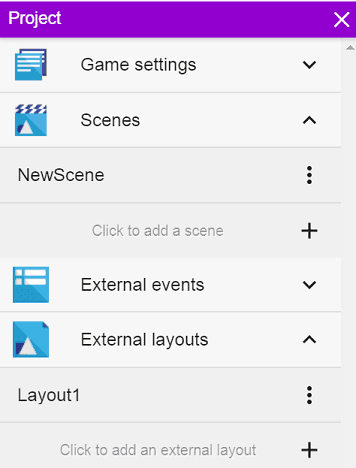You will encounter the term “assets” a lot as you work with GDevelop. In computer game development language, assets are the files that make up the game content – things like characters, platforms, audio files, etc.