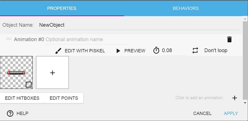• In the Object Editor dialog box, click + to add an animation.