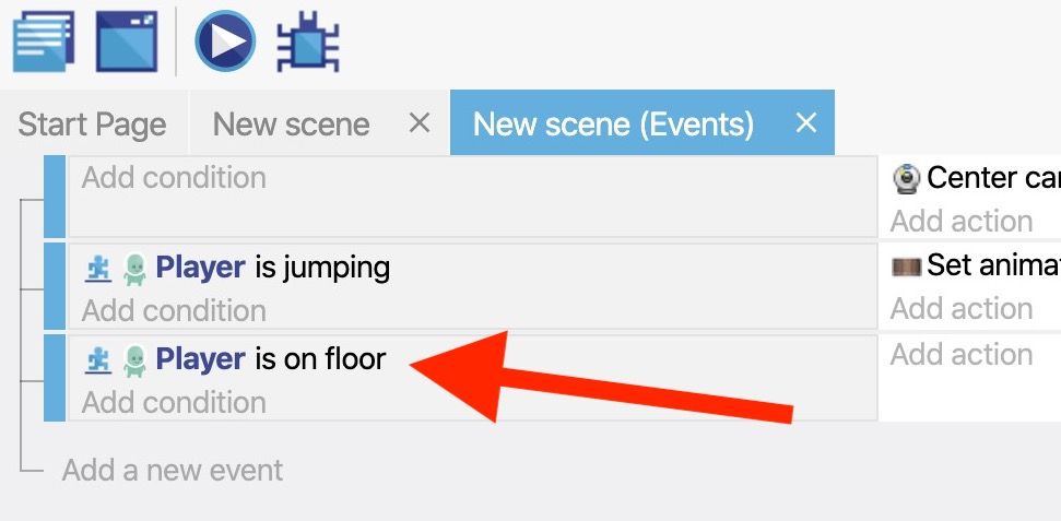 There's a problem with the jumping animation: it doesn't reset when the player has finished jumping. To fix this, trigger the "Idle" animation when the player returns to the platform.