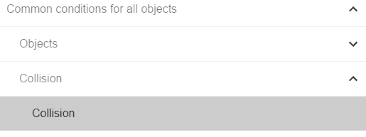 Add a new blank condition: "Common conditions for all objects", "Collision", Collision