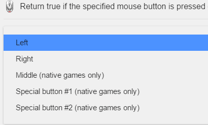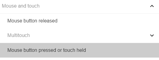 Choose the condition "Mouse and touch" "Mouse button pressed or touch held".