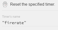 Enter “firerate” as the parameter which is the name of our timer ( again, be aware of the quotes! ).