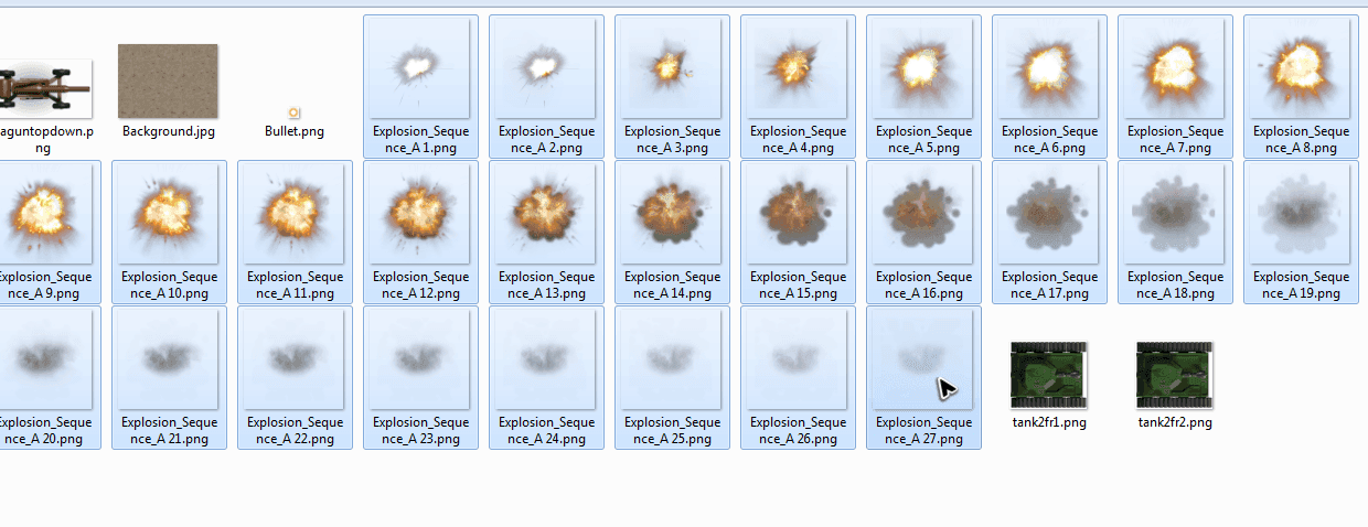 Add a new sprite object, name it "explosion", and add all the images to the animation beginning with Explosion_