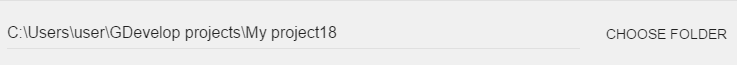 For this tutorial, you need an empty game project but before selecting this option, you need to choose a folder where your game will be saved. On the bottom of the "Create a new game" page you will find the "Choose Folder" area. You may need to scroll down to see this option. Keep the default location or select the location where you'd like to save your game.