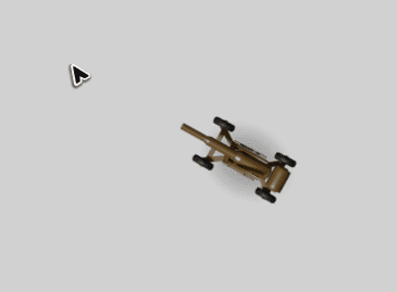 This action will create a "turret" in the scene. The "turret" can then be selected, moved around and rotated.